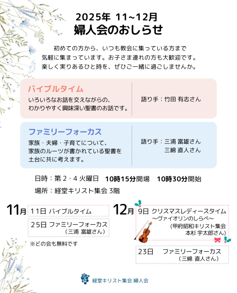 今後の聖書講演会の予定(2025年9月~12月)*変更あり